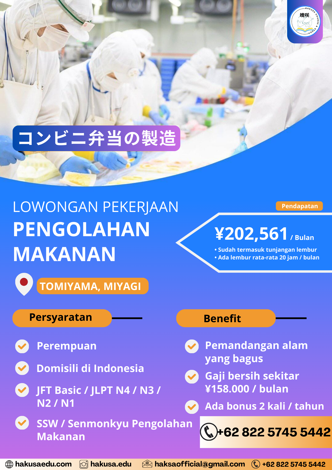 Meskipun Jepang terkenal dengan teknologinya, industri pengolahan makanan masih membutuhkan tenaga manusia. Inilah kesempatan emas Anda untuk bergabung dalam industri pangan canggih di Jepang!